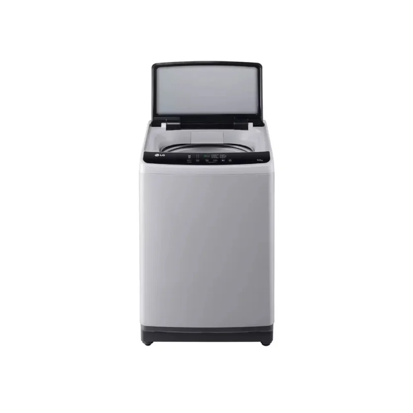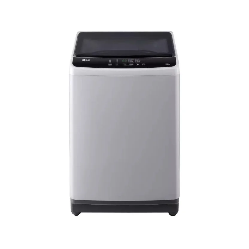 Lavadora LG Carga Superior 9 Kg. color gris, realce el espacio del cuarto de lavado con su diseño moderno y versátil, programe la hora de finalización del lavado gracias al programa de temporizador y no se preocupe por el lavado, mantén la tina libre de bacterias con la tecnología Tub Clean puedes desinfectarla de manera periódica, con la función de cierre suave evita que la tapa se cierre bruscamente, La puerta de cristal templado es resiste a los rayones haciendo una lavadora más duradera.
